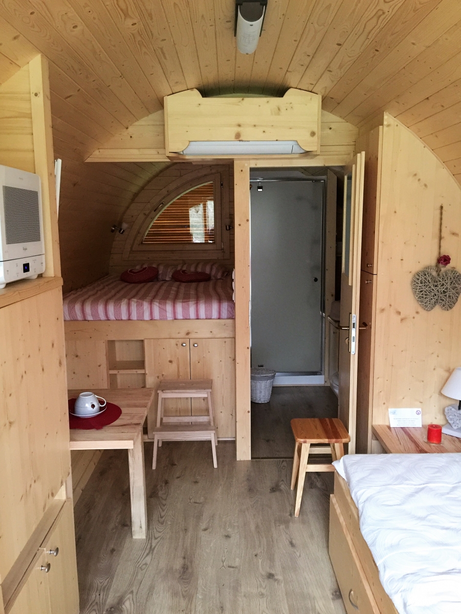 A l'interieur du Tonn'Home, l'espace y est optimisé pour offrir un hébergement insolite au confort d'un gite de prestige.