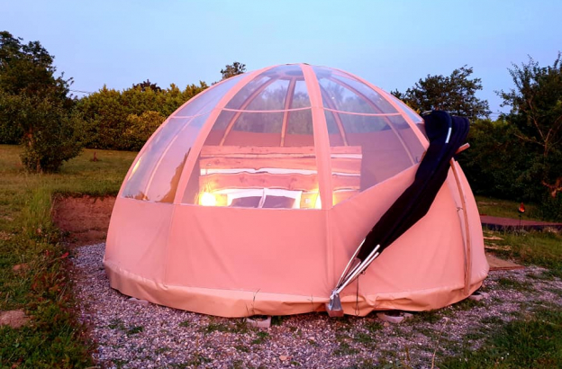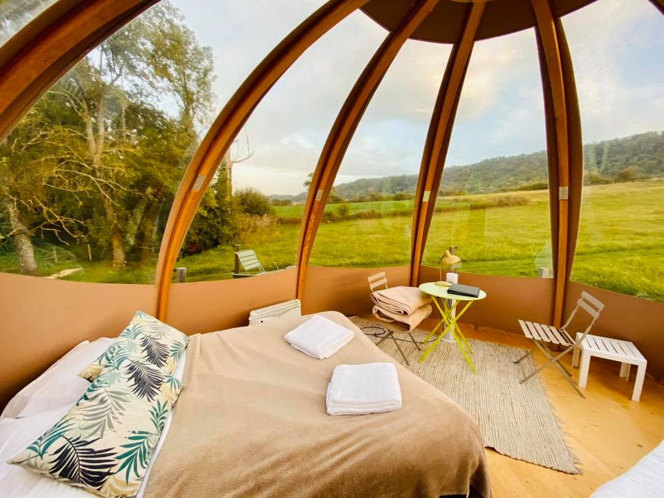 Espace douillet avec une vue idéale sur l'extérieur, ce Wigwam donne l'impression de dormir dans une bulle transparente.